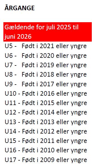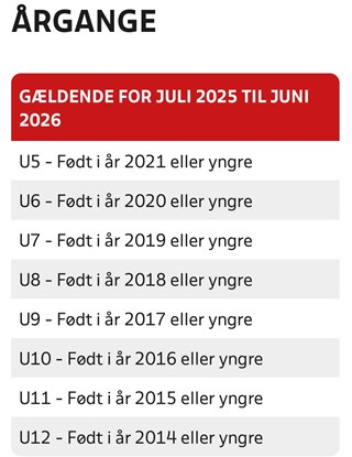 Hvis du er i tvivl om hvilket hold dit barn skal spille på, kan du på nedenstående tabel få en forklaring: